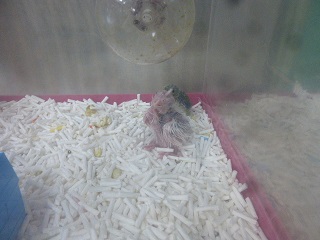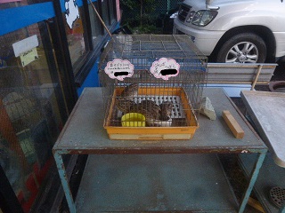 ケージに入れたとたん餌をガン喰いしていました